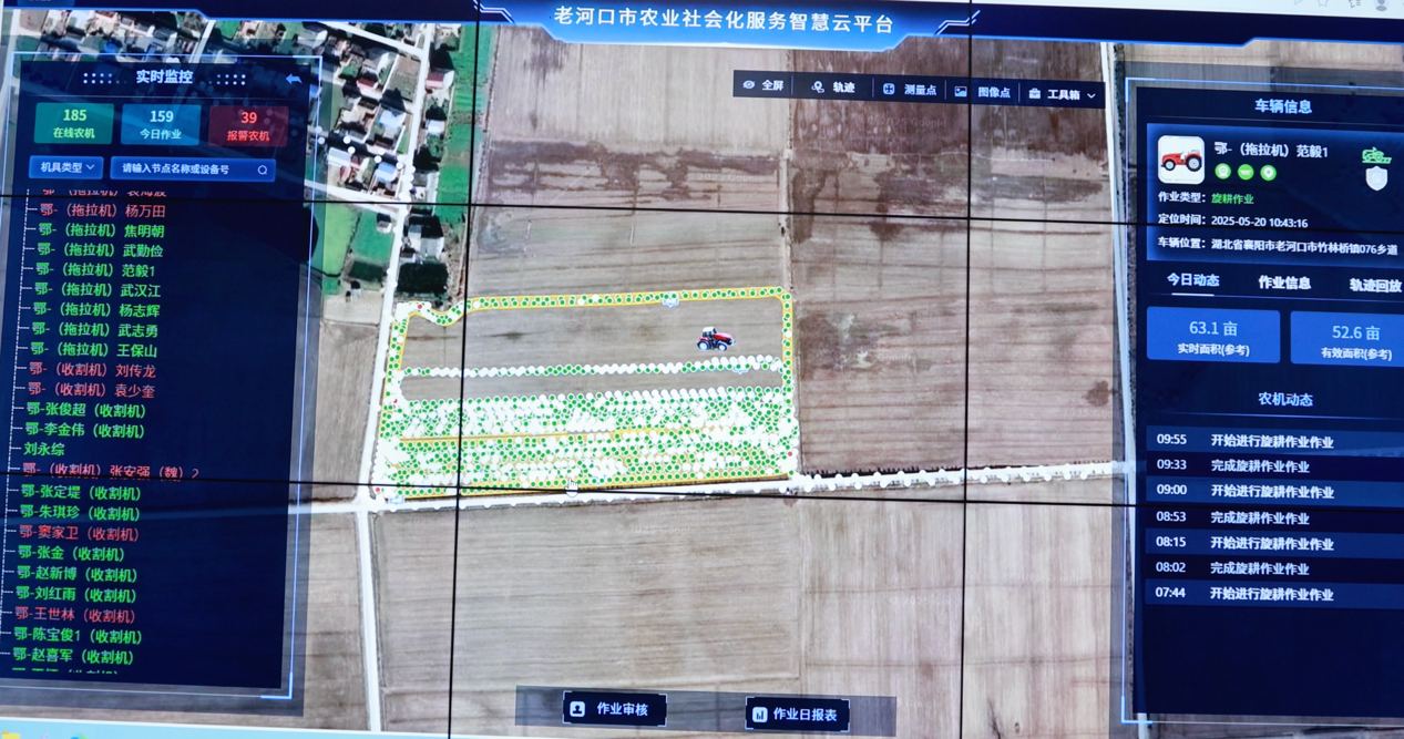 在位于张集镇的湖北农垦联丰农业开发公司农业社会化服务中心,代表们仔细观摩了智慧云平台实时监控系统。通过该系统的“天眼”,不仅能实时知晓系统内185台农业机械的作业轨迹,还能全时掌握土壤墒情、病虫害预警等重要信息,为农业社会化服务提供科学的数据支撑。