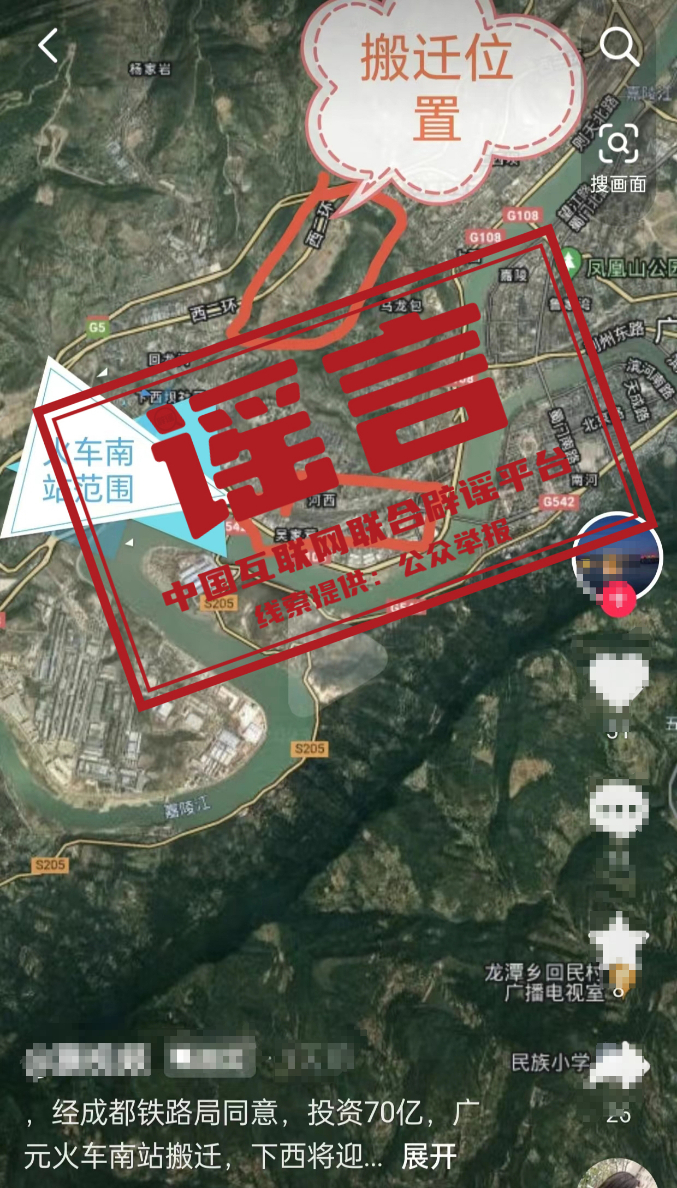 真相:11月13日,有网民在某网络平台发布视频,称经过成都铁路局同意,将投资70亿元搬迁广元南站,引发市民关注。14日,成都铁路局广元车务段相关负责人在接受记者采访时表示,该条信息属于谣言。广元南站是中国铁路成都局集团有限公司管辖的货运编组一等站,是四川地级市中唯一的编组站,也是四川省内除成都市货运编组站外最大的货运编组枢纽站。对于搬迁问题,四川省发改委调研组曾经来过现场进行考察,但由于牵涉面广,搬迁难度较大,广元南站是否搬迁还未正式确定。网上所发布的广元南站将要搬迁的信息多为不良房地产开发商或者中介商为了炒房而发布的不实信息。(来源:@广元日报看广元)