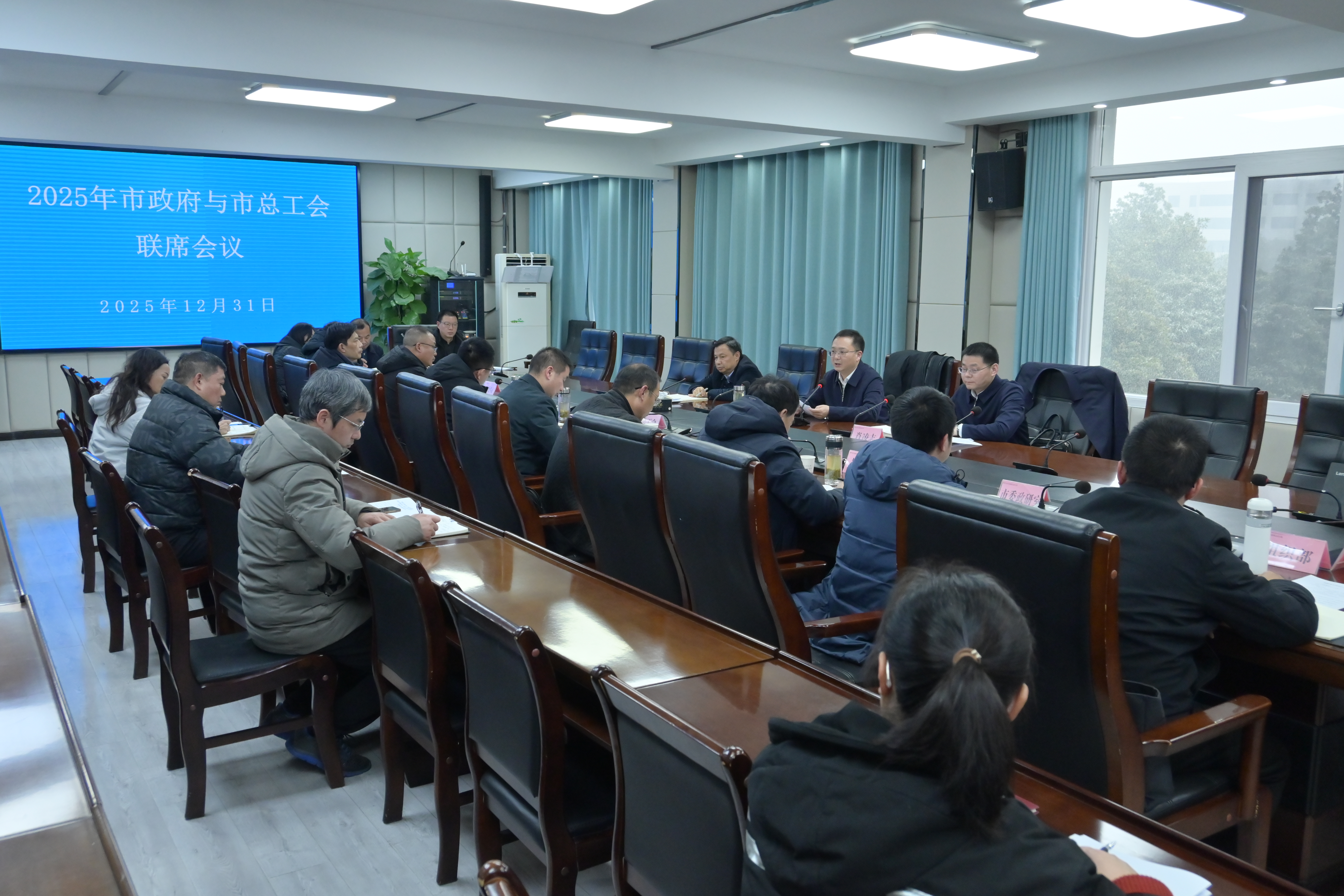 12月31日,市政府与市总工会联席会议召开。市委副书记、市长郭章新参加会议并讲话,市委常委、组织部部长、总工会主席肖凌志主持会议,市委常委、副市长付静忠参加会议。