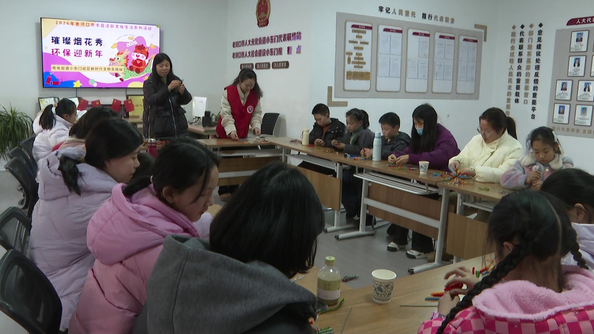 2月10日,小东门社区开展扭扭棒烟花手工亲子活动,邀请社区亲子家庭共同参与。
