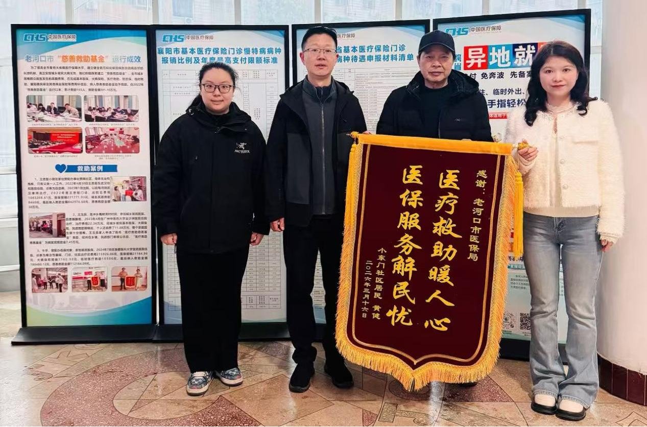 3月16日,我市参保人黄健的父亲专程来到市医保局,将一面绣着“医疗救助暖民心,医保服务解民忧”的锦旗送到工作人员手中,表达对医保部门主动担当、高效服务、为民排忧的诚挚谢意。